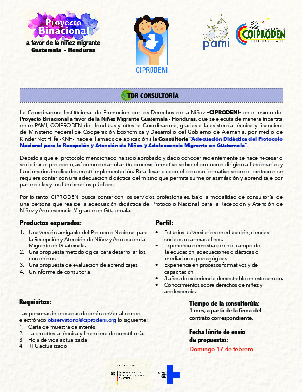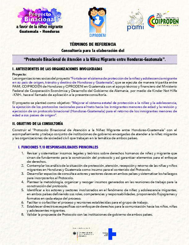 TDR-Elaboración del Protocolo Binacional de Atención a la Niñez Migrante entre Honduras-Guatemala
