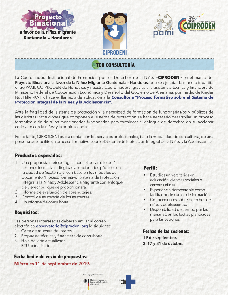 Consultoría “Proceso formativo sobre el Sistema de Protección Integral de la Niñez y la Adolescencia”