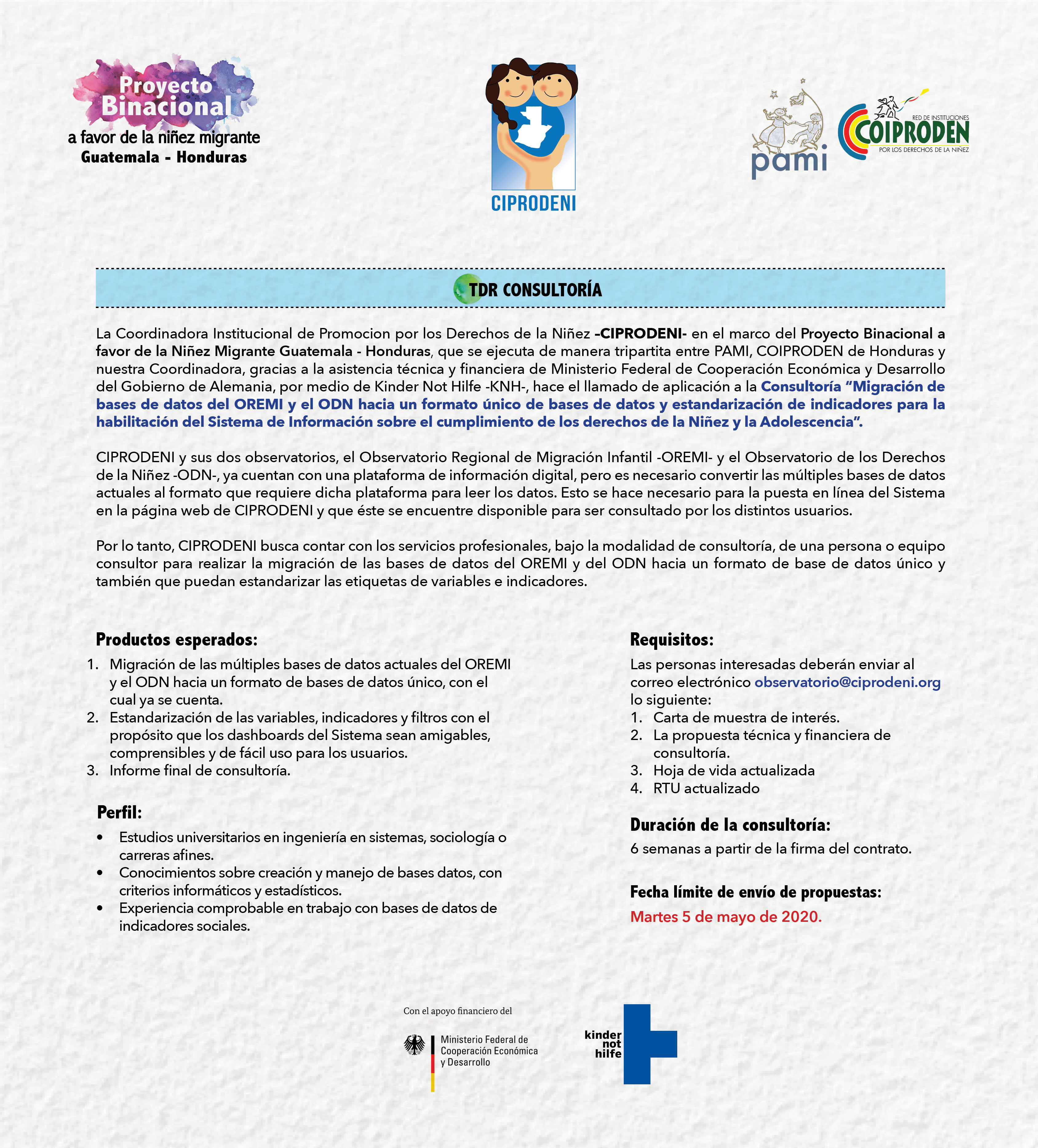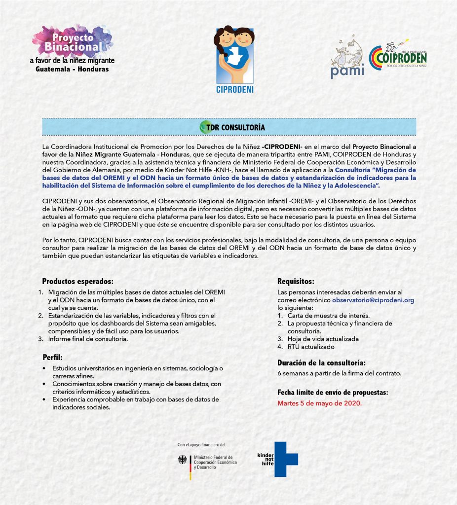 TDR- “Migración de bases de datos del OREMI y el ODN hacia un formato único de bases de datos y estandarización de indicadores para la habilitación del Sistema de Información sobre el cumplimiento de los derechos de la Niñez y la Adolescencia”